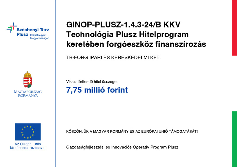 Kedvezményezett neve: TB-FORG IPARI ÉS KERESKEDELMI KFT.